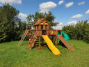 Детская площадка Выше Всех Новая Победа 25 разработана как для индивидуального использования на большом участке, так и для общественных мест на территории СНТ или коттеджных поселков. Модель отличается широким набором элементов, которые будут интересны как малышам, там и детям постарше. Особенно данная модель понравится активным любителям лазилок, ведь здесь целых два модуля с канатной сеткой, скалодоромом и альпинистской стенкой! Изюминка модели Новая Победа 25 является мостик, соединяющий два моделя: качельный и модуль со скалодромом и сеткой-лазалкой. На этом мостике можно поиграть в крестики-нолики, можно использовать по прямом назначению, а можно разыгрывать целые ролевые сюжеты с поисками кладов, спасением принцессы из башни или захватом пиратского корабля! Какая бы фантазия не посетила вашего ребенка, он сможет ее реализовать на площадке Новая Победа 25.