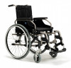 Для изготовления складной рамы используется прочный алюминиевый сплав. Коляска может быть укомплектована как литыми, так и пневматическими быстросъемными колесами, которые с помощью специальных адаптеров легко регулируются по высоте. Регулируемые по высоте подножки, легко снимаются или отводятся в сторону для удобства пересаживания пользователя. Модель оснащена ручным стояночным тормозом.