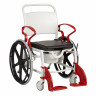 Также модель оснащена пластиковым съемным санитарным судном, которое находится под сиденьем. Оно легко моется, а одноразовые гигиенические пакеты делают уход за больным еще проще. При необходимости судно можно снять, а кресло разместить над унитазом. Ручка на спинке предназначена для перевозки пациента на стуле сопровождающим. Подножки кресла-туалета можно снять.