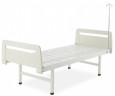 В комплектацию кровати входит также дуга для подтягивания и трансфузионная стойка. Это позволяет создавать максимально функциональное пространство для пациента и медицинского персонала. Кровать установлена на колесики, которые позволяют перемещать ее при необходимости транспортировки в другое отделение. Боковые ограждения кровати сделаны из алюминия.