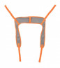 - Один из ножных отделов имеет меньшую ширину относительно другого. На более широком отделе расположены два текстильных фиксатора. Данная конструкция позволяет соединить оба ножных отдела вместе, тем самым минимизируя риск выпадения пользователя из ремня.